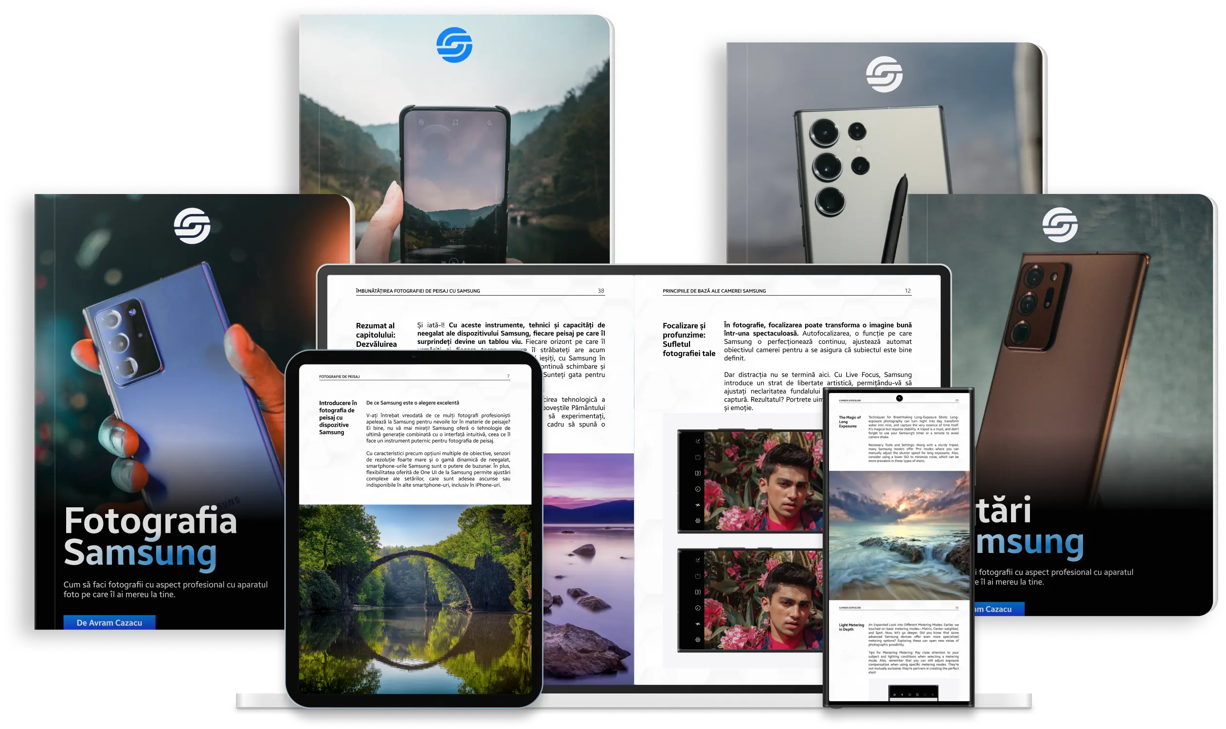 Cărțile noastre acoperă tehnici și sfaturi de fotografie care pot fi aplicate oricărui model Samsung. Cu toate acestea, unele dintre setări și caracteristici pot fi ușor diferite în funcție de modelul Samsung și de versiunea de software pe care o aveți.