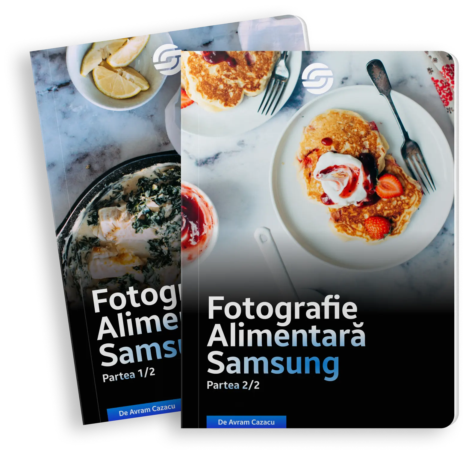 În prezent, oferim șase cărți: Fotografia Samsung, Fotografie de Peisaj, Setări Samsung, Postprocesare Samsung, fotografie mobilă cu AI și Fotografie Alimentară. Fiecare carte se concentrează pe un subiect specific și acoperă totul, de la compoziție și iluminare până la tehnici de postprocesare și editare.